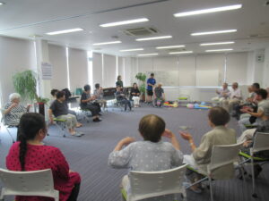 午前中は健康教室にて体を動かし、心身共にリフレッシュしていただきました。その後は、お昼ごはんを囲み、参加者同士の交流を深めました。