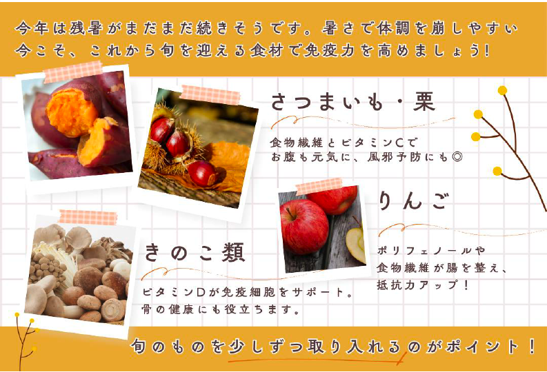 【健康福祉部】~Vol.104  残暑で疲れやすい今こそ、旬の力で元気を!